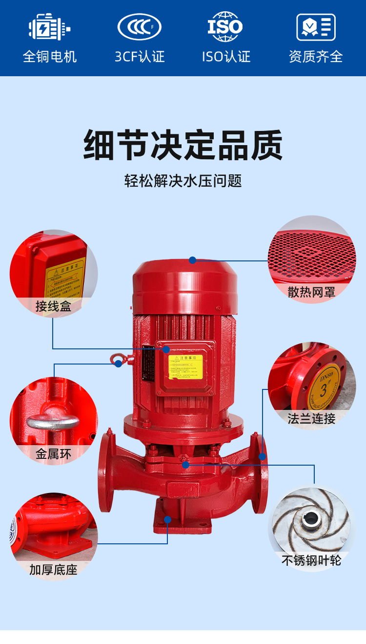 壓力穩(wěn)定:多級葉輪串聯(lián)增壓,能提供穩(wěn)定、連續(xù)且高壓的水流,滿足消防系統(tǒng)對不同高度、區(qū)域的供水壓力需求,保障滅火效果。