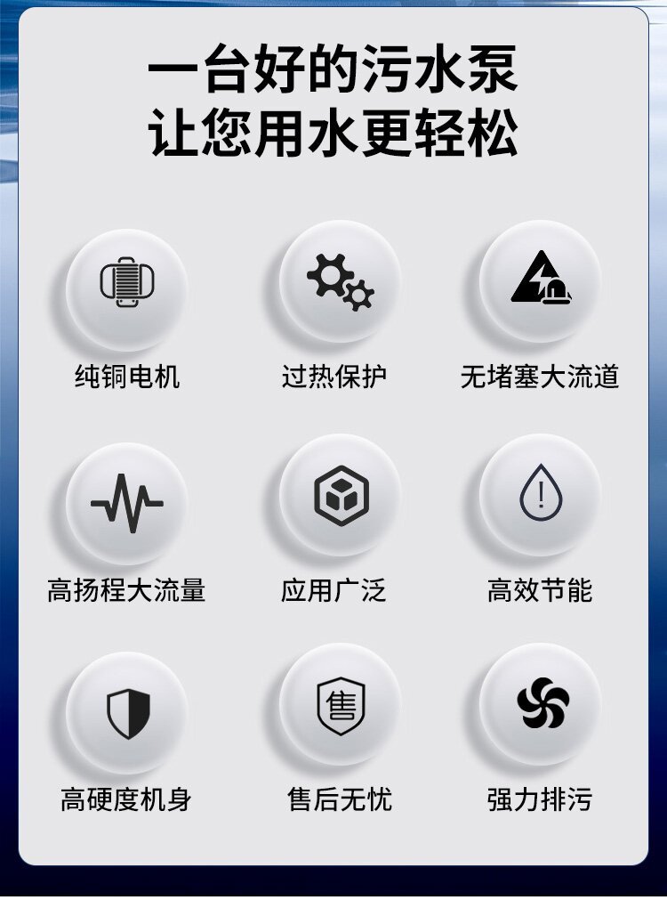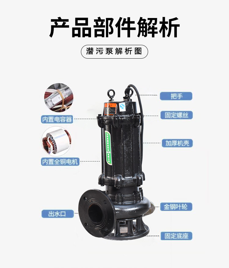 普通潛污泵的核心功能聚焦于基礎(chǔ)的污水輸送,主要依靠離心力實現(xiàn)液體的提升和輸送。其設(shè)計目標是在處理含有少量懸浮顆粒的污水時保持穩(wěn)定運行,對于濃度較低、雜質(zhì)顆粒較小的污水具有較好的適應(yīng)性。在正常工況下,普通潛污泵能有效輸送 COD 濃度較低的生活污水或輕度污染的工業(yè)廢水,但對含有大量纖維、毛發(fā)、淤泥等雜物的污水處理能力有限。