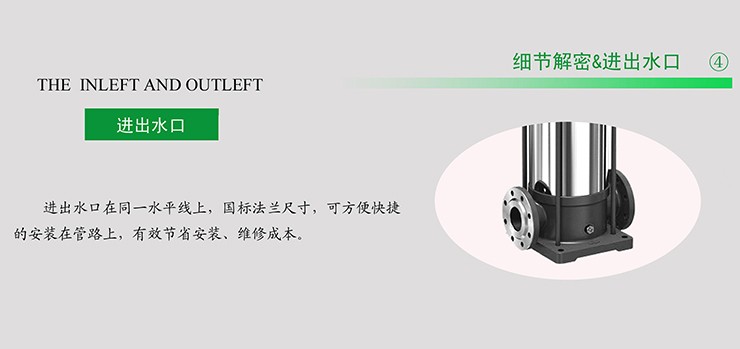 5、多級泵的進水口與出水口位于泵座同一水平線上,可直接用于管路當中。