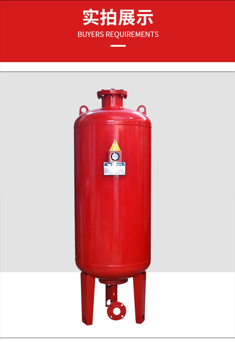 本設(shè)備的工作壓力分別為0.6mpa、1.0mpa、1.6 mpa,消防儲水容積大于150L、300L、450L,穩(wěn)壓水容積大于50L,用于消火栓系統(tǒng)時