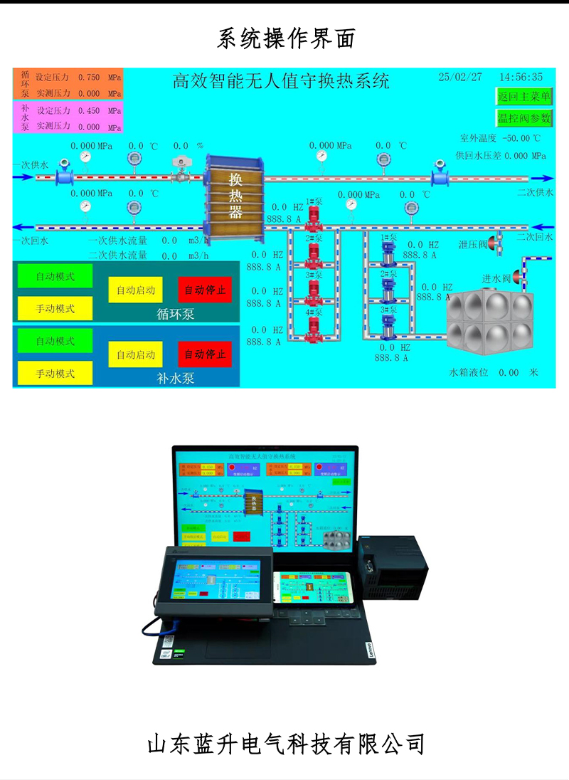 我公司推出可編程控制器(PLC)+觸摸屏(HMI)組成換熱控制系統,系列產品包括 3+1,3+2,4+3,等多種產品可選擇。例如:4+3 表示 4 臺循環泵+3 臺補水泵。